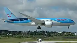 Аэропорт способен принимать большинство крупных самолётов, включая Boeing 747. Аэропорт был одним из немногих пунктов назначения, куда совершал регулярные рейсы и обслуживался самолёт Concorde авиакомпании British Airways. Время полёта «Конкорда» из Соединённого Королевства на Барбадос составило менее 4 часов. Первый визит «Конкорда» на Барбадос был совершён в 1977 году на серебряный юбилей королевы. В 1980-х годах Concorde вернулся для коммерческих рейсов на Барбадос, а затем вылетел на Барбадос во время напряжённого зимнего сезона. 17 октября 2011 года Boeing 787 Dreamliner, прибыл в аэропорт для испытаний. За этим последовало прибытие 24 октября Boeing 747-8I для дальнейших испытаний в условиях высокой влажности.