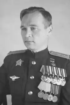 - ↑ Должность и воинское звание на дату представления к присвоению звания Героя Советского Союза.
