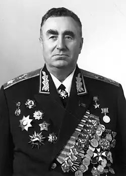 - ↑ Указ Президиума Верховного Совета СССР от 7 мая 1965 года № 3555-VI «О присвоении звания Героя Советского Союза маршалам, генералам и адмиралам Вооружённых Сил СССР» // «Ведомости Верховного Совета СССР». — 1965. — № 19 (1262). — Ст.264.