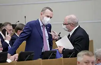 - ↑ Веселова, Виктория (28 сентября 2021). Крымская «пятёрка»: кто заходит в Госдуму России после выборов на полуострове. Крым.Реалии. Архивировано 18 декабря 2021. Дата обращения: 7 июня 2022.