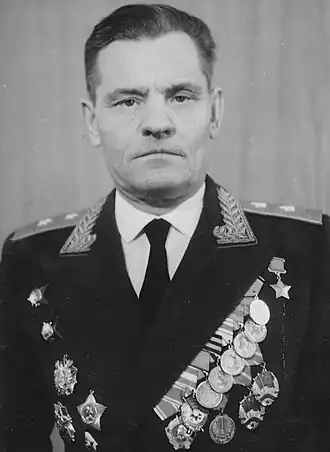- ↑ Должность и воинское звание на дату представления к присвоению звания Героя Советского Союза.