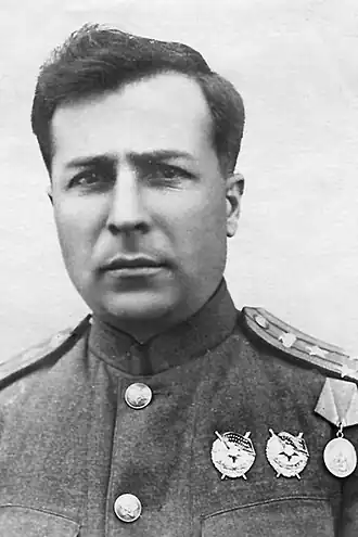 - ↑ [Приказом НКО № 03552 от 04.11.1943 г. утвержден в должности.]