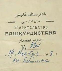 - ↑ Таймасов Р. С. Башкирский военный совет // Башкирская энциклопедия / гл. ред. М. А. Ильгамов. — Уфа : ГАУН РБ «Башкирская энциклопедия», 2015—2024. — ISBN 978-5-88185-306-8.