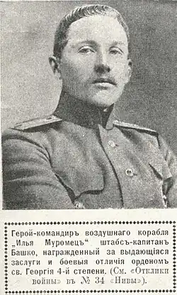 - ↑ Игорь Капский. Военный летчик Иосиф Башко, командир воздушного корабля «Илья Муромец»-«Киевский» в годы Первой мировой войны: опыт сравнительного анализа мемуаров : Магистерская диссертация. Дата обращения: 1 июня 2020. Архивировано 30 ноября 2020 года.