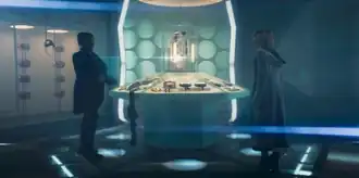 Тринадцатый Доктор (Джоди Уиттакер) в ТАРДИС Неизвестного Доктора (Джо Мартин) | |
