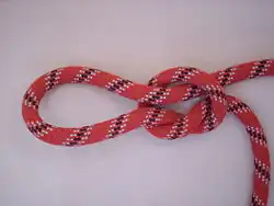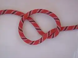 ![]() Завязанный синтетической верёвкой бегущий простой узел | |