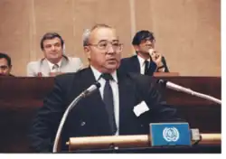 После обретения независимости, в городе Женева (Швейцария) Казахстан впервые участвует в работе Международной Организации Труда (МОТ), где Министр вручает письмо от имени Президента РК Назарбаева Н. А. — Председателю МОТ г-ну Хансену А. Д. и выступает на сессии МОТ. Таким образом, Республика Казахстан становится полноправным членом данной организации.
