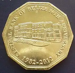 1 января 2012 года выпущена памятная банкнота номиналом 20 долларов, посвящённая 30-летию Центрального банка Белиза. На реверсе купюры изображено здание Центрального банка Белиза.