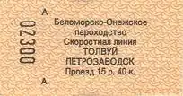 Пассажирские линии обслуживали суда Беломорско-Онежского пароходства: пароходы «Урицкий» (эксплуатировался на пассажирских линиях БОПа 1941—1959), «А. Жданов» (1941, 1946—1947), «Володарский» (1940—1945, 1955—1958), «Карл Маркс» (1940—1947, списан в 1951), «Первомайский» (1947—1952), «Онежец» (1940—1947), «Роза Люксембург» (1940—1955, списана в 1956), Трамвай № 1 и № 2 (1940—1946), «Джамбул» (1940—1958), «Вересаев» (1944—1956, в 1957 переоборудован в грузовой), «Безбожник» (1940—1941), «Лесной» (1945—1954), «Нарва» (1945), теплоходы «Лермонтов» проекта 623 (1954—1979, списан в 1987), Ом-337 (1959—1988), Ом-344 (1964—1987), Ом-357 (1970—1973) проекта 780; «Москвич-171» (1955—1977), «Москвич-172» (1955—1980) проекта 544, Мо-94 839 проекта (1964—1970); «Беломорье» проекта 1430 (1972—2007, в 2008 г. эксплуатировался компанией «ТК БОП»), «Ладога» проект 646 (1959—1997); «Московский-2» (1984- в 2008 г. эксплуатировался компанией «ТК БОП» под именем «Онежская жемчужина»), «Московский-23» (1987- в 2008 г. эксплуатировался компанией «ТК БОП» под именем «Кижское ожерелье», в 2009 г. эксплуатировался ООО «Скат») проекта 81080; «Днепро-Буг» проекта 623 (1955-сер.1980-х гг.), «К. Э. Циолковский» проекта 588 (1964—1980), «Михаил Ломоносов» (1979—2000-е гг.) проекта 301, «Серго Орджоникидзе» (1960—1961 г.) проекта 588, «Мезень», «Спутник» проекта 1152, «Капитан Заонегин» проекта 1462 (в 1980-х гг. вспомогательный, в 1990-х на линии Петрозаводск-Зимник-Бараний Берег[15]).