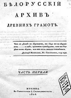 Первое археографическое издание документов по истории Беларуси. Издан археографом И. И. Григоровичем (ч. 1, М., 1824) на средства графа Н. П. Румянцева.