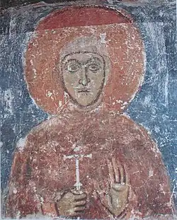 Попытка портретной характеристики видна в росписях Полоцкой Спасо-Ефросиниевской церкви постройки XII века. Здесь явно несколько манер письма. Лицо серафима, головы молодых архидиаконов в апсиде и лицо молодой монашенки-мученицы написаны в классической византийской манере, восходящей к античному искусству. М. С. Кацер предположил, что монахиня и есть Предслава (Ефросинья, по заказу которой построена церковь[4]. В лицах святителей и Авраама виден определённый отход от классических византийских образцов, хотя связь полостью ещё не утрачена. Пластическая основа подаётся в сочетании с линейным контуром. Полная стилизация формы как итог переработки византийских образцов намечается при использовании контрастных широких мазков (голова Давида). На другой стене церкви рельеф лиц изображается с помощью охристых тонов с линейным абрисом[5][6]. По тематическому и композиционному решению фрески полоцкой церкви отличаются от известных фресок XII века (псковская Спасо-Мирожская церковь и киевская Кирилловская церковь) и более сближаются с росписями новгородской Богородицкой церкви (1125). Учёные предполагают два варианта: а) фрески Спасской церкви принадлежат новгородским ученикам романских фрескистов; б) это творение полоцких мастеров, прошедших тот же путь обучения что и новгородские художники[7].