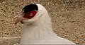 Общая длина тела 86—96 см. Оперение почти полностью белое, грудь, спина и крылья иногда светло-серые. На голове чёрная шапочка, хвост темный серо-зеленый, издалека кажется чёрным. Ноги красно-розовые, вокруг глаз неоперённый участок бардово-красного цвета[3][1]. Молодые птицы буровато-серые, но быстро приобретают взрослое оперение. Голос — далеко разносящиеся хриплые скрипящие звуки[3].