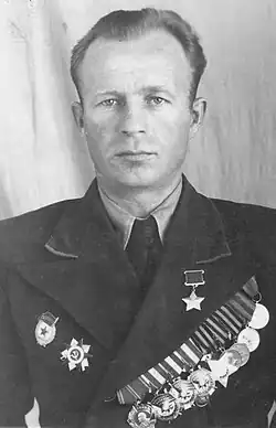 - Награждён орденом Ленина, тремя орденами Красного Знамени, двумя орденами Отечественной войны 1 степени, орденом Славы 3 степени, а также медалями.