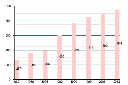 | 1962 | 1968 | 1975 | 1982 | 1990 | 1999 | 2006 | 2007 | 2011 | 2012 |