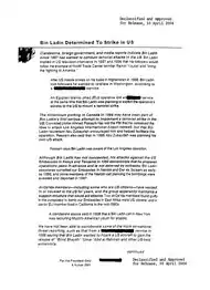 «Бен Ладен намерен нанести удар по США» (англ. Bin Ladin Determined To Strike in US) — Ежедневное президентское резюме, подготовленное Центральным разведывательным управлением и переданное президенту США Джорджу У. Бушу в понедельник, 6 августа 2001 года, за 36 дней до терактов 11 сентября. В документе содержалось предупреждение об угрозе террористических атак со стороны Усамы бен Ладена и «Аль-Каиды», включая «подозрительную активность в этой стране, связанную с подготовкой к захвату» американского самолёта[1].