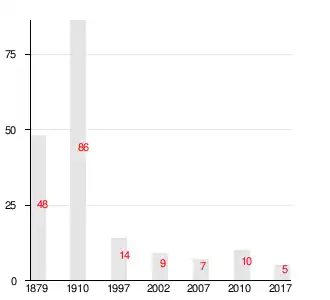 | 1997[14] | 2002[15] | 2007[16] | 2010[17] | 2017[1] |