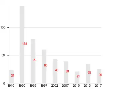 | 1997[16] | 2002[17] | 2007[18] | 2010[19] | 2017[1] |