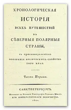 - 1 2 Vasiliĭ Nikolaevich Berkh. Хронологическая исторія всѣх путешествій в сѣверныя полярныя страны: с присовокупленіем обозрѣнія физических свойств того края. — при И. Академіи наук, 1823. — 508 с. Архивировано 31 мая 2024 года.
