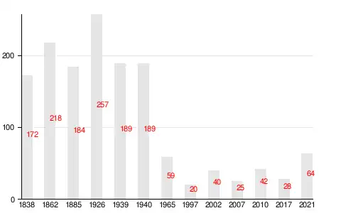 | 1838 | 1862[27] | 1885 | 1926 | 1940 | 1965 | 1997 |