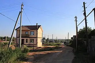 Дома старой постройки на улице Дорожной, он же центральный проезд через деревню