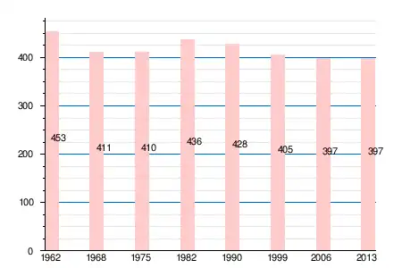 Население коммуны в 2011 году составляло 429 человек[7], в 2012 году — 413 человек[8], а в 2013-м — 397 человек[6].