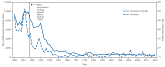 - 1 2 Pieracci EG, Pearson CM, Wallace RM, Blanton JD, Whitehouse ER, Ma X, et al. (June 2019). Vital Signs: Trends in Human Rabies Deaths and Exposures - United States, 1938-2018. MMWR. Morbidity and Mortality Weekly Report. 68 (23): 524–528. doi:10.15585/mmwr.mm6823e1. PMC 6613553. PMID 31194721.