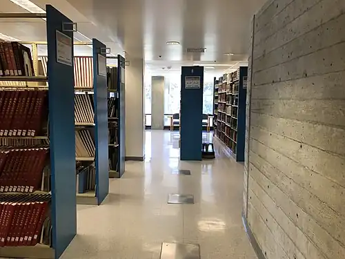 На самом деле «отсутствующий» третий этаж — это открытый / внешний форум. Это просто железобетон и запасной выход, который помогает студентам с 4-8 этажей выбраться, не переходя на второй этаж.[16] «Третий этаж» — это фактически два отдельных уровня. Площадки третьего этажа в общественных лестничных клетках выходят на бетонную платформу за пределами библиотеки, которая изначально предназначалась для демонстрации скульптур, акустической музыки, импровизированных бесед на открытом воздухе, открытой зоны для собраний и чтения стихов.[17] Возможная кража библиотечных материалов и риски, связанные с потенциальной кражей редких частных коллекций литературы и искусства UCSD, привели к тому, что двери третьего этажа были защищены, чтобы их можно было использовать только в чрезвычайных ситуациях или персоналом здания для передачи оборудования в центральный офис напрямую, чтобы не нарушать работу библиотеки. Площадка «второго» третьего этажа пронумерована как этаж «3.5» и состоит из инженерных коммуникаций и проводки к верхним уровням. Входов к пролетам на 3.5 этаже нет; это запираемые подсобные помещения, предназначенные в основном для обслуживания и ремонта.[18]