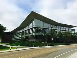 Архитектура здания, спроектированого американским архитектором Уильямом Перейрой, описывается как нечто среднее между футуризмом и брутализмом.
