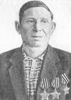 Михаил Филиппович Бикетов (1923—2000) — полный кавалер Ордена Славы, стрелок 120-го гвардейского Познанского Краснознаменного ордена Александра Невского стрелкового полка (39-я гвардейская стрелковая дивизия, 8-я гвардейская армия, 1-й Белорусский фронт).