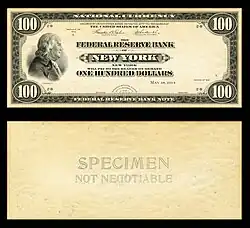 Впервые билеты федерального резервного банка большого размера были выпущены в 1915 году в номиналах $5, $10 и $20. Их особенностью было художественное оформление, сочетающее в себе графику как билетов национальных банков, так и федеральных резервных билетов. В 1918 году были дополнительно выпущены билеты с номиналами $1, $2 и $50.