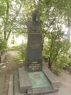 Умер 4 мая 1952 года от кровоизлияния в головной мозг. Похоронен в Санкт-Петербурге на Литераторских мостках Волкова кладбища[6]. Надгробие (скульптор А. Н. Чернецкий, архитектор Н. Г. Эйсмонт) создано в 1954 году.