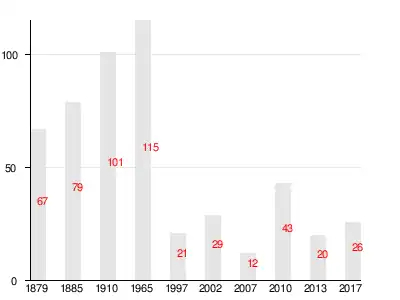 | 1997[16] | 2002[17] | 2007[18] | 2010[19] | 2017[1] |