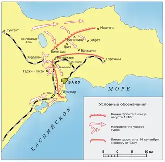 | Итог | Победа АДР и Османской империи. Взятие Баку Кавказской исламской армией; падение правительства Диктатуры Центрокаспия | ||