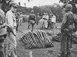 ![]() Американские солдаты во время высадки на пляже Талисей, 26 марта 1945 года | |||