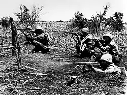 Остатки японского гарнизона продолжали сопротивление, укрывшись в пещерах и ущельях известнякового хребта в южной части острова, откуда периодически проводили вылазки и контратаки[8].