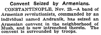 - ↑ The Battle of Holy Apostles' Monastery by Gen. Andranik, 2008, p. 57.