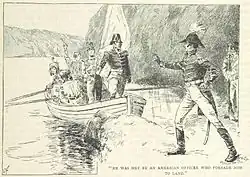 "Крупная картечь и мушкетные пули, вылившиеся на них с близкого расстояния по мере приближения к берегу, создали невероятный хаос. Один разряд из полевого орудия под руководством самого капитана Денниса (капитана гренадеров 49-го полка) убил пятнадцать человек в одной лодке."