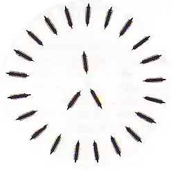 Эллины использовали новый тактический приём. По первому сигналу трубы они «повернули носы кораблей на врага, а кормами сдвинули их в середину друг против друга»[4]. Современные историки говорят о том, что греческие корабли сформировали подобие круга[5]. В то же время они отмечают сложность формирования такого образования из более чем 270 кораблей. Предложенный Фемистоклом манёвр предотвращал возможность вражеским кораблям таранить греческие триеры в кормовую часть. При таком расположении персы не могли пройти сквозь строй или обойти противника, используя своё численное преимущество[59].