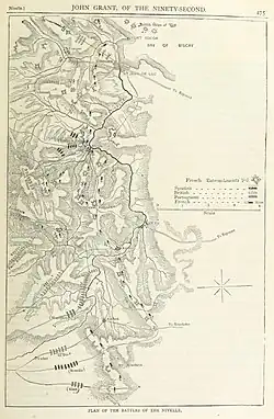 Битва при Нивеле произошла 10 ноября 1813 года у реки Нивель в конце Пиренейской войны (1808—1814 гг.). После осады союзниками Сан-Себастьяна 80 тыс. британских, португальских и испанских войск Веллингтона (20 тыс. испанцев не участвовали в битве) преследовали по горячим следам маршала Сульта, войско которого насчитывало 60 тыс. человек. После легкой дивизии основной британской армии было приказано атаковать, а 3-я дивизия разбила армию Сульта на две части. К 2 часам Сульт уже отступал, а англичане занимали сильную наступательную позицию. Сульт потерял 4351 человека, а Веллингтон — 2450.