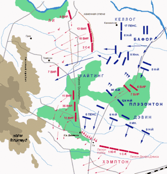 Небольшой дивизион полковника Даффи (1200 чел.) был задержан двумя полками противника возле Стивенсберга и в итоге прибыл на поле боя слишком поздно.