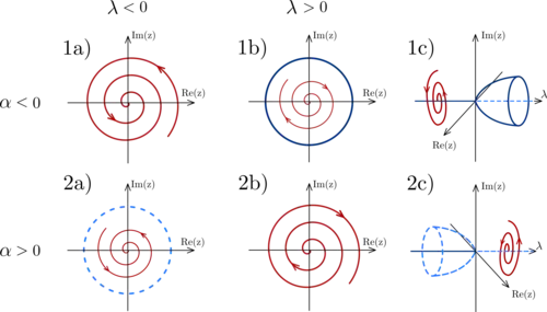 Если отрицателен при положительном , то бифуркация суперкритическая, если положителен при отрицательном — субкритическая.