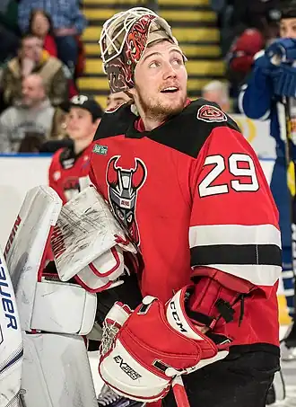 - ↑ Kalman, Matt. Blackwood gets first NHL win, Devils defeat Bruins. NHL.com (27 декабря 2018). Дата обращения: 29 декабря 2018. Архивировано 30 декабря 2018 года.
