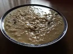| Ойтмил[К. 45] (Oatmeal) «Овсянка, Овсяная каша» | Международное (в Шотландии с периода Средневековья) | Каша из овсяной крупы (дроблёной, не дроблёной или плющеной), овсяных хлопьев или толокна. | Овёс замачивается на ночь в подсоленной воде, утром готовится на слабом огне в течение нескольких минут, пока смесь не загустеет. | С солью, маслом, молоком или пахтой. | |