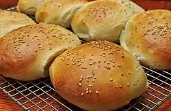 | Хот-кросс-бан[К. 9] (Hot cross bun) «Горячая крестовая булочка» | ![]() | Международное, издревле (гипотеза: в Англии изобретена монахом из аббатства Сент-Олбанса, XIV в.) | Пасхальная булочка с нанесённым сверху изображением белого креста (иногда как надрез на булке или с помощью полосок теста). | Сдобное тесто с пряностями (обычно корицей, мускатным орехом, гвоздикой) и изюмом. | В Великую пятницу (отмечают конец Великого поста). |