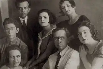 С. С. Богатырёв с учениками в Харьковской консерватории, слева направо: Е. Адливанкина, М. Полевский, В. Аркин, Г. Маречек, А. Лаврова-Щербинина, М. Итигина. (Конец 1920-х гг. Фото из семейного архива Ю. Щербинина)