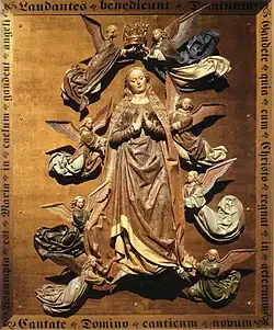 Оригинальный текст (исп.)En éste una excelente tabla que representa a la Virgen, casi de tamaño natural, en su Asunción, de la escuela alemana, y puede ser muy bien de Alberto Durero; todo es bellísimo: cabeza, manos, paños, angelitos verdaderamente celestiales, bordaduras; solo tiene en derredor un cielo arremolachado y unas nubes durísimas que no corresponden[26].