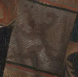 Для создания золотого фона использовалось сусальное золото: им покрыта бо́льшая часть поверхности[110][111]. Комплексные материалографические исследования выявили также присутствие серебра: в микроскопическом количестве на центральной и левой панели, и в гораздо большем на правой. По всей видимости, золото, использовавшееся для позолоты правой панели, было менее качественным и содержало значительную примесь серебра, что впоследствии отразилось на её внешнем облике. Поскольку серебро, в отличие от золота, подвержено коррозии, со временем золотое покрытие правой панели разрушилось или покрылось тёмными пятнами[112].