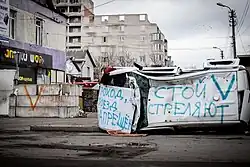 - ↑ Залишити як є чи передати до музею: що робити з творами Бенксі на Київщині? Життя (20 ноября 2022). Дата обращения: 20 октября 2024. Архивировано 20 сентября 2024 года.