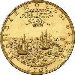 30 мая царь отпраздновал первую морскую победу троекратным залпом из пушек и ружей. Пётр I и Меншиков были награждены военным советом орденами Святого Андрея Первозванного[2] (номера 6 и 7 соответственно). Награждение проходило 10 мая в походной церкви. Вручал ордена первый кавалер этого ордена генерал-адмирал Головин после торжественного молебна в крепости Шлотбург. На эту награду Пётр в письме графу Апраксину отреагировал так: