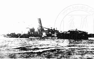 В это время второй китайский корабль — минный крейсер (торпедная канонерка) «Гуанъи» сам атаковал «Наниву», тем самым отвлекая огонь японцев на себя. В отличие от более старого «Цзиюаня», на «Гуанъи» были новые скорострельные орудия, из которых за короткий бой китайцы успели выпустить почти весь свой боезапас. «Гуанъи» обменивался огнём с «Нанивой», а затем и с подошедшей «Акицусимой». Китайский корабль был сильно поврежден, загорелся и начал тонуть. Капитан Линь Госян приказал выброситься на берег у острова Сиппхальдо. 79 уцелевших членов команды сошли на берег. Котел и минный погреб были подорваны. Через некоторое время к сидящему на рифах «Гуанъи» подошёл крейсер «Акицусима» и сделал по нему более тридцати выстрелов.